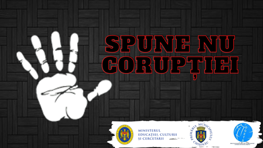 Direcția Generală Educație, Tineret și Sport a Consiliului municipal Chișinău, îşi reafirmă intoleranţa față de faptele de corupţie şi încurajează toți actanții din sistemul educațional, părinții, profesorii, elevii întru, asigurarea integrității să respecte prevederile legislative stabilite în Codul Educației al Republicii Moldova, Codul de etică al cadrului didactic, Legea integrității nr. 82 din 25.05.2017, ordinele MECC și DGETS cu privire la combaterea fenomenului corupției.