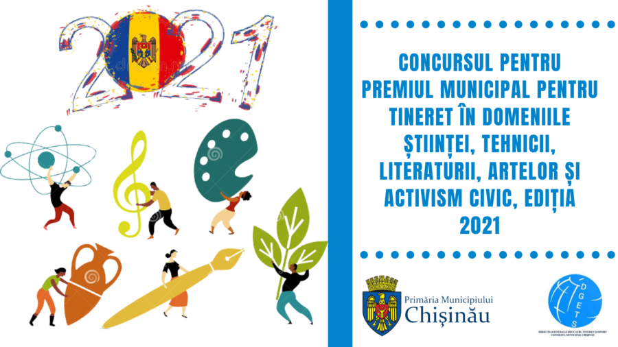 Direcția generală educație, tineret si sport a Consiliului municipal Chișinău Vă comunică referitor la lansarea Concursului pentru Premiul municipal pentru tineret în domeniile științei, tehnicii, literaturii, artelor si activism civic, ediția 2021, pentru tinerii cu vârsta cuprinsă între 18-35 ani.
